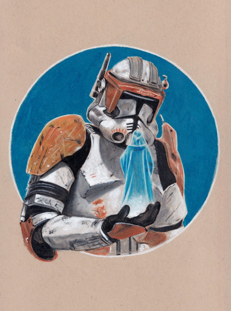 I think it’s important to see Obi-wan as a combat veteran. In this sketch, I wanted to show something of this recollection –a kind smile for lost, happier times, and perhaps a sense of guilt for the current state of the galaxy and the violence that he knows Luke must face.